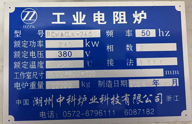 型號:RCWACLW-240 額定功率:240Kw 額定電壓:380 額定溫度:950℃ 工作室尺寸:6000×800×120mm